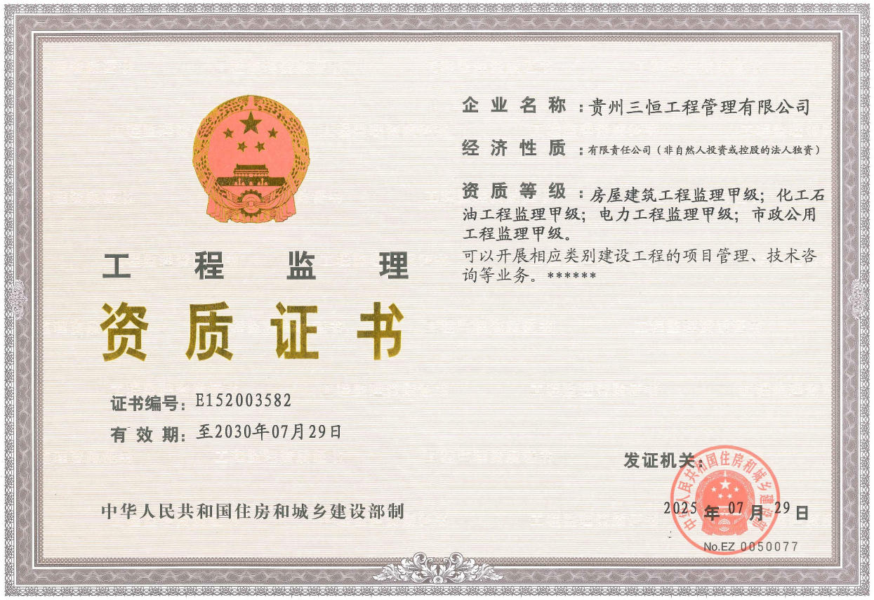 工程监理甲级资质(房屋建筑工程、化工石油工程、电力工程、市政公用工程)